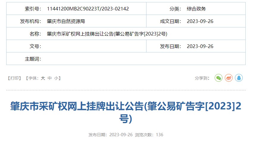 9月26日,廣東肇慶自然資源局發(fā)布封開縣長(zhǎng)崗鎮(zhèn)欖逕礦區(qū)飾面用花崗巖礦采礦權(quán)掛牌出讓公告。該礦飾面用花崗巖礦資源儲(chǔ)量16629萬(wàn)方(超1.66億方)、建筑用花崗巖礦資源儲(chǔ)量2349萬(wàn)方,合計(jì)18978萬(wàn)(約1.9億方)。設(shè)計(jì)年產(chǎn)700萬(wàn)方,出讓30年,其實(shí)價(jià)格47.5億元。